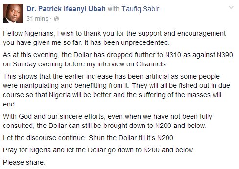 In less than 48 hours after Dr. Ifeanyi Ubah's comments on live