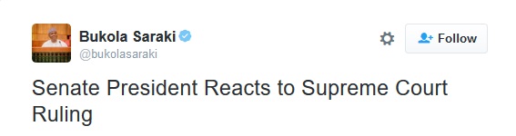Former Governor of Kwara State and the embattled Senate President, Dr. Bukola Saraki, has reacted officially to the ruling of the Supreme Court dismissing his appeal that sought to stop his corruption trial at the Code of Conduct Tribunal.